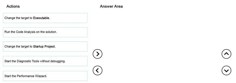 Which three actions should you perform in sequence? To answer, move the appropriate actions from the list of actions to the answer area and arrange them in the