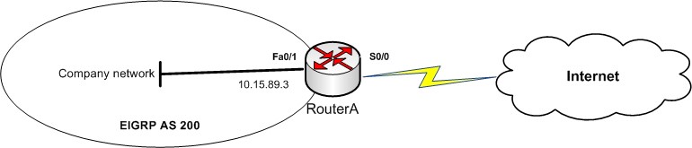 routerA(config)# ip route 0.0.0.0 0.0.0.0 S0/0