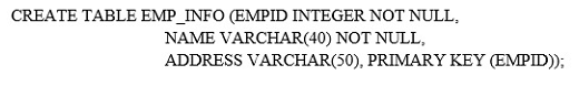 Given the following CREATE TABLE statement, and a unique index on column EMPID, which set of SQL sta admin 6 years ago Given the following CREATE TABLE statement, and a unique index on column EMPID, which set of SQL statements is valid? A. B. C. D. ← Previous question Next question →
