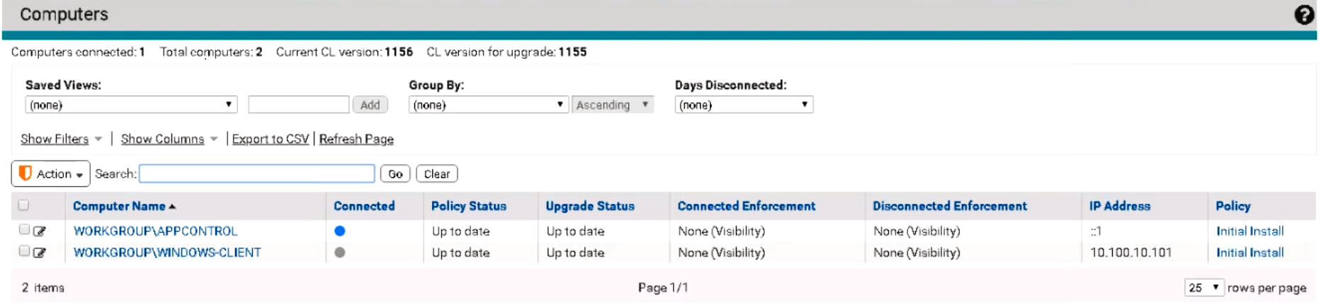 An administrator is troubleshooting App Control agent issues. When navigating to the Computer Details page, the administrator sees the following: